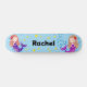 Two cute little mermaid girls in water with starfish and bubbles creates a playful underwater scene on the skateboard. Perfect for those children that love skateboarding or this can be used as wall art for a child’s bedroom. Add a name or text of your choice in black lettering to personalize.