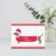 If you are a dachshund lover, you can wish your family and friends a merry Christmas with this cute cartoon doxie red and green Xmas postcard!