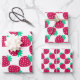 Cute Minimal Strawberry Pattern in Red and Green Wrapping Paper Sheet