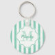 Cute Mint Green Painted Stripes Monogram and Name Keychain