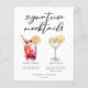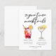 This cute signature mocktails menu sheet features 2 drink drawings and their ingredients for your wedding bar or pool party. A Shirley Temple and non-alcoholic Lemon Drop for a trendy bar menu with your customized event text.