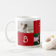 Cute and trendy coffee mug for two best friends with three horizontal photos that can be customized, the letters BFF on red rectangles, two customizable names, and the text "Best Friends Forever" -- which can also be customized, if you wish (for instance, to read "Best. Friends. Ever.").