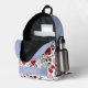 This cute and modern girl's backpack features a white background with berries & cherry pattern in pink, red and pale blue. Personalize it for your needs. You can find matching products at my store.