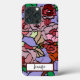 Cute Modern Bright Red Flowers Violet iPhone 13 Pro Case | Cute Modern Bright Red Flowers inspired by Tiffany gifts for her for Jennifer | Add name