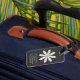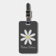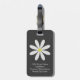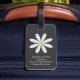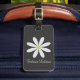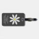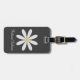 This adorable luggage tag features a textured black pattern. On top is an illustration of a daisy with white petals and a yellow centre. There is room on the front for your name, and room on the back for your contact details. Perfect for your travels!
