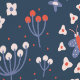Cute Modern Flowers Butterfly Blue White Pattern Wallpaper