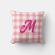 Cute Modern Girly Gingham Plaid Hot Pink Monogram Throw Pillow
