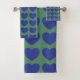 Cute Modern Green and Blue Heart Pattern Bath Towel Set
