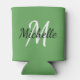 Cute Modern Green Monogram Name + Initial Template Can Cooler