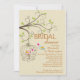 Cute modern love birds in love Bridal shower invitation featuring the cutest pink & blue birds sitting on a tree branch with a red heart set on a stylish tan & white stripe background. Visit our shop for matching postage stamps, thank you notes and sticker.