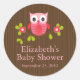 Cute adorable owls baby shower envelope enclosure sticker . Our Cute owl baby shower sticker can also be used on baby shower favours. Design features a cute modern owl sitting on a lime green tree branch with flowers set on a chocolate brown background. Matching owl Baby shower invitations, thank you cards and postage stamps available. Easy to personalize with your information. © Petit Tatti