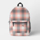 Cute Modern Peach Check Plaid Monogram Initials Printed Backpack