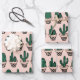 Cute Modern Pink Green Potted Cactus Pattern Wrapping Paper Sheet