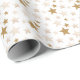 Make your gifts shine with this elegant white wrapping paper featuring a delicate star pattern in cream and antique gold tones.