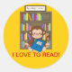 Cute Monkey Back to School Reading Classic Round Sticker