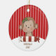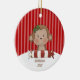There's an adorable monkey. It has holly on it's head.In front of it is a large rolled candy in red and white stripes. The background is a dark and lighter red striped. Personalize to make it special! Check out our many other designs! ©primsydodles