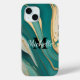 Cute Monogram Aqua Gold Fluid Art Marble Aesthetic Case-Mate iPhone Case