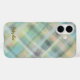 Cute monogram script plaid teal yellow grey green Case-Mate iPhone case