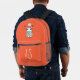 Coral orange neutral colour backpack with cute anime monster cartoon and cool customisable monogram initials. Perfect for school or college student. Minimalist, cool and sophisticated.