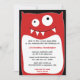 This 5x7 boys birthday party invite has a cute fun monster theme. In the middle, there is a red pillow monster with your easily customizable party information in the centre. Copyright Babystar Design.
