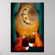 Cute Moon Night Forest Foxes Nature Kids Nursery Poster