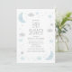 Baby shower invitation with cute night sky illustrations - smiling moon, stars and clouds