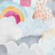 Introducing the **Cute Mountain Landscape Hot Air Balloon Nursery Wallpaper**—a delightful and whimsical addition to any child's room. This charming wallpaper features a watercolor mountain landscape with clouds, hot air balloons, and rainbows, all set against a palette of grey, blue, pink, white, and peach. Perfect for a cozy nursery, it combines playful elements with an elegant, minimalist, and trendy modern design.