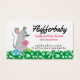 Cute, adorable mouse with balls of yarn and daisieson this business card for a knitter or knitting, crochet or homespun yarn business.