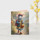 This card features a cute mouse girl on her way to school - the perfect gift for school enrolment, birthdays and more! Custom text and colour.