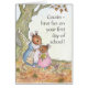 A 'Have Fun on your First Day of School' greeting card for a Cousin, with a little mouse leaving Mousehole Cottage to set off for her first day at school. This design is from a hand-painted watercolour illustration by Judy Adamson. You can personalize inside message.