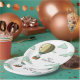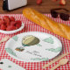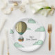 Adorable personalized paper plates with an illustration of a grey mouse in a hot air balloon floating away. Great for your baby shower, farewell celebration or graduation. Personalize the text with your own. Illustrated and designed by Patricia Alvarez.