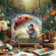Cute Mouse Ladybug Watercolor Rainbow Easter Holiday Card