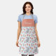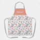Cute grey mouse mother with two babies, flowers pattern all-over print Apron. On the upper there a band of solid coral colour with grey border and name.