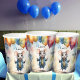 This paper cups features a cute mouse with a jacket and pants, holding lots of balloons in his hands. Digital art - watercolor. A super cute motif for children! Pretty personalizable paper cups for Kid's birthday, baby shower and more!