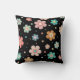 Cute Multicolour Flower Pattern On Black Throw Pillow