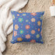 Cute Multicolour Flower Pattern On Blue Throw Pillow