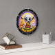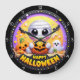 This round wall clock features an adorable Halloween scene with a cute mummy holding a jack-o'-lantern, flanked by pumpkins and a friendly ghost. A starry, pastel yellow and purple sky forms the background, with "Happy Halloween" below the mummy. This charming clock is perfect for adding a touch of cuteness to your spooky season decor.