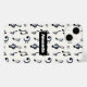 A phone case with a musical themed design. A pattern with treble clef, bass clef and other musical symbols.
