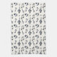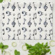 Kitchen towel with a musical themed design. A pattern with treble clef, bass clef and other musical symbols.