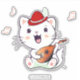 Cute Musical White Cat with Mandolin