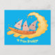 Cute nachos corn chips surfing cartoon postcard