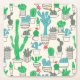 Cute Natural Floral Cacti Pattern Square Paper Coaster