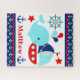 Cute Nautical Blue Whale and Sailing Boat design with Navy Blue and White Anchors Pattern. Graphics and Pattern by KlouiseDigiArt on Etsy