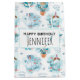 Happy Birthday gift bag with a whimsical pattern featuring cute smiling whales happily swimming in the sea.