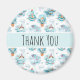 Thank you magnet with a whimsical pattern featuring cute smiling whales happily swimming in the sea.