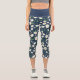 Cute Navy Blue And White Floral Daisy Capri Leggings