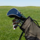 Trendy Golf Head Cover features a dark navy blue background,Add your initials or monogram in bold white text for a look that is simple and cute,