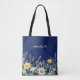 Cute Navy Blue Boho Wildflower Design Tote Bag