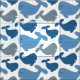 Cute Navy Blue Gray Whale Pattern Fabric