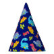 Cute Navy Blue Pattern Dinosaur Birthday Party Hat
